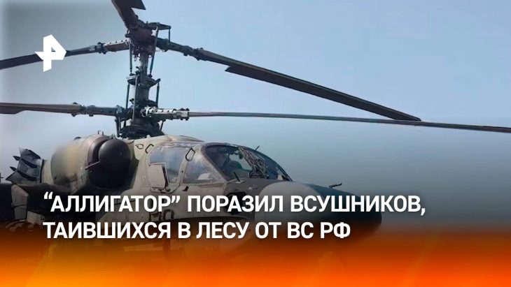 Минобороны РФ: Вертолет «Аллигатор» уничтожил боевиков ВСУ, прятавшихся в лесу в зоне ответственности группировки войск «Север».