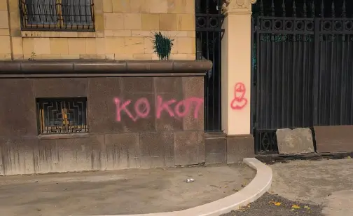 В ночь на чешский государственный праздник, 28 сентября, на здании посольства Чехии в Москве появились оскорбительные надписи. Среди них были такие выражения, как «педерасты» и «петухи».