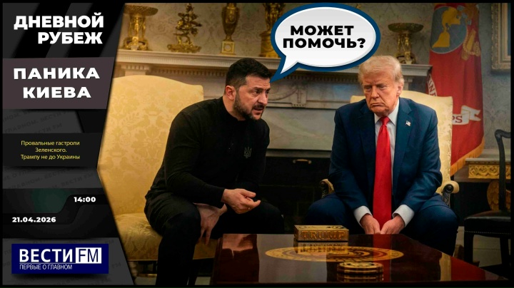 «Дневной рубеж» с Николаем Осиповым на Вести ФМ от 21 апреля 2026. Темы: Паника в Киеве. Провальные гастроли Зеленского. Трампу не до Украины.