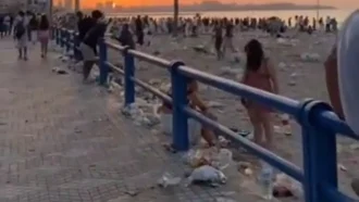 А кто-то говорит что в России грязно! Так выглядят романтичные вечера на пляже в испанском Аликанте в 2025 году.
