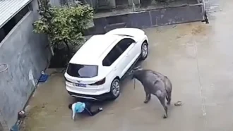 Разъяренный бык напал на мальчика во дворе собственного дома, припаркованная машина спасла ему жизнь.