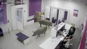 Две упитанные свинки пришли за своим заказом в пвз Wildberries.