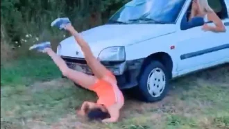Женщина решила сделать сальто, но все пошло не по плану. Идея была хорошая… исполнение — не очень…