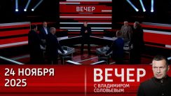Источник №1 Источник №2 Сегодня в студии Вечера Владимир Соловьев и приглашенные им эксперты разбирают самые острые темы: от внутренних проблем России до глобальных геополитических вызовов.