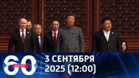 Передача «60 минут» последний выпуск (дневной) от 03 сентября 2025 на Россия 1, смотрите онлайн в хорошем качестве. Военный парад в Пекине и реакция Запада. Ведущие: Ольга Скабеева и Евгений Попов.