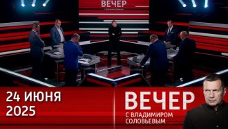 «Вечер» — эфир и запись видео от 24 июня 2025. Ведущий: Владимир Соловьев. Президент США Дональд Трамп заявил, что война между Израилем и Ираном закончена. По словам Трампа, победили все