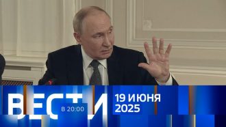 Программа «Вести 20 00» — смотрите выпуск от 19 июня 2025 года на канале «Россия 1» в HD-качестве. Ведущие: Мария Ситтель, Ирина Россиус, Оксана Куваева, Евгений Рожков, Александр Ефремов и Денис Полунчуков.