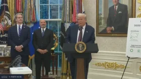 Трамп выступает с заявлением из Овального кабинета после встречи Владимира Путина и посланника президента США Стивена Уиткоффа.