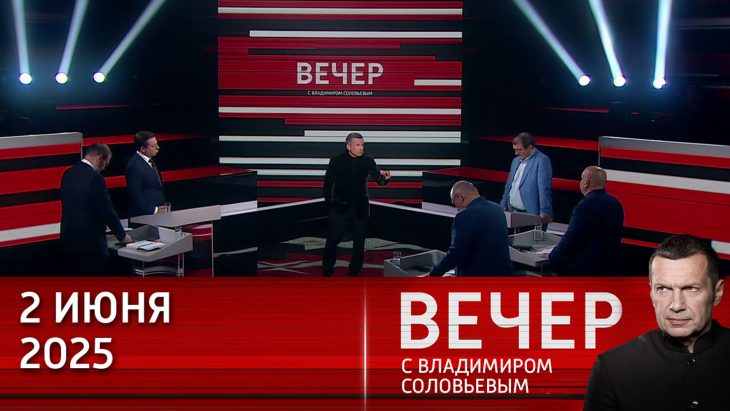 «Вечер» — прямой эфир и запись от 02 июня 2025. Ведущий программы: Владимир Соловьев.