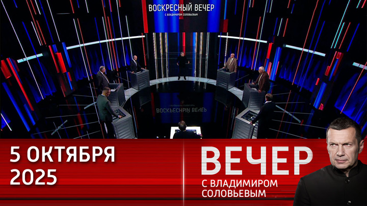 Программа «Воскресный вечер» с Владимиром Соловьевым — от 05 октября 2025 на Россия 1, смотреть онлайн в хорошем качестве HD.