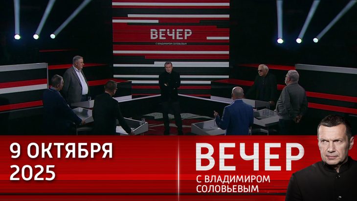 Программа «Вечер» с Владимиром Соловьевым — последний выпуск от 09 октября 2025 на Россия 1, смотреть онлайн в хорошем качестве HD.