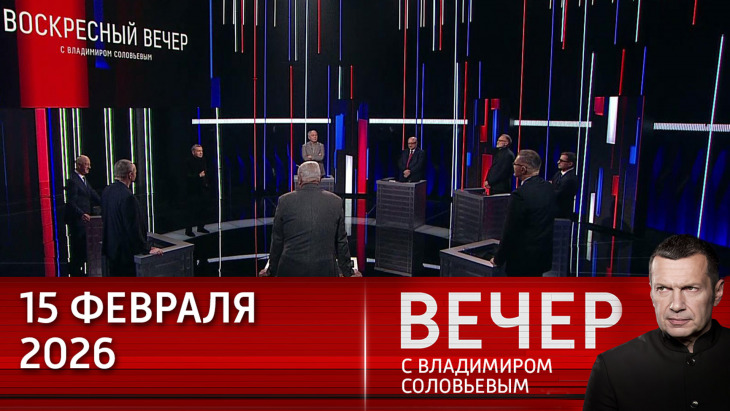 «Воскресный вечер» с Владимиром Соловьевым от 15 февраля 2026: авторитетные эксперты разбирают самые главные политические темы дня, от внутренних проблем России до глобальных геополитических проблем с Западом. В эфире открыто обсуждаем болезненные вопросы текущего дня, СВО, ситуацию на Украине, обострение отношений с ЕС и кризис в диалоге между Россией и США.