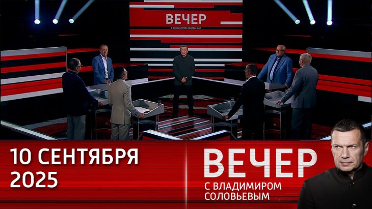 Передача «Вечер» с Владимиром Соловьевым от 10 сентября 2025 на Россия 1, смотрите онлайн в хорошем качестве.