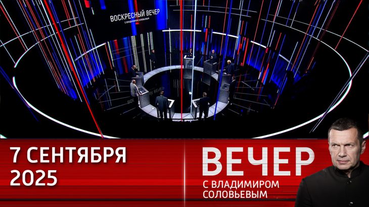 Передача «Воскресный вечер» с Владимиром Соловьевым от 07 сентября 2025 на Россия 1, смотрите онлайн в хорошем качестве.